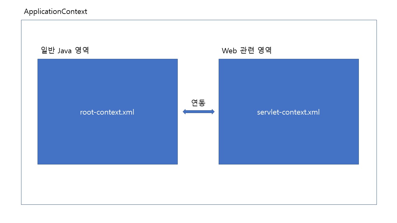 MVC 구조는 내부적으로 root-context.xml로 사용하는 일반 Java 영역과 servlet-context.xml로 설정하는 Web관련 영역을 같이 연동해서 구동합니다.