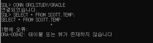 >> ORCLSTUDY로 권한 철회된 TEMP 테이블 조회하기(실패)