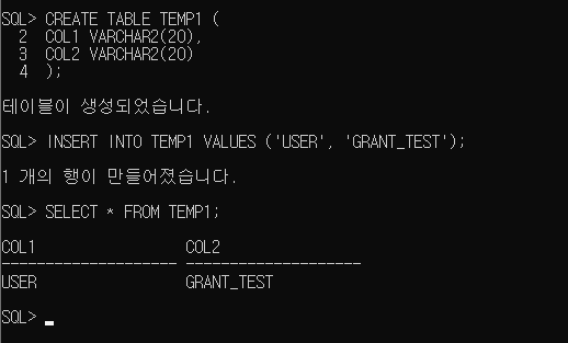 >> ORCLSTUDY 사용자의 소유는 아니지만 SCOTT 계정의 TEMP 테이블을 조회하고 INSERT도 가능해짐