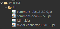 1. 위 세 가지 라이브러리를 WEB-INF/lib 경로에 추가합니다.
